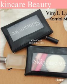 Souvenir Dompet Pipih Bahan Vinyl Luck Kombinasi Mika Dengan Resleting Atas Dan Tanpa Tali Pegangan Ukuran +- 16 x 10 cm GSC495