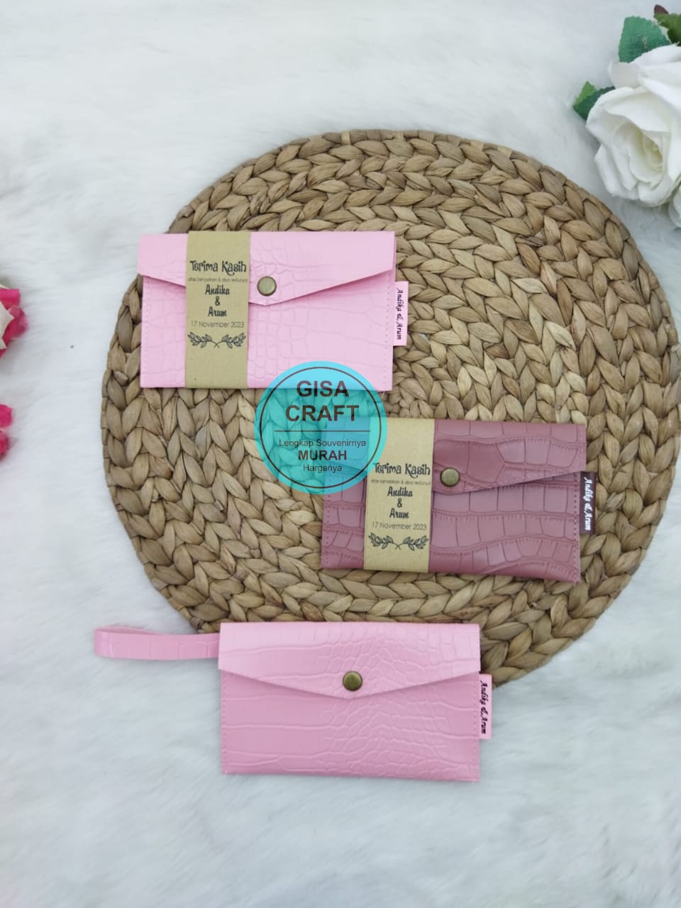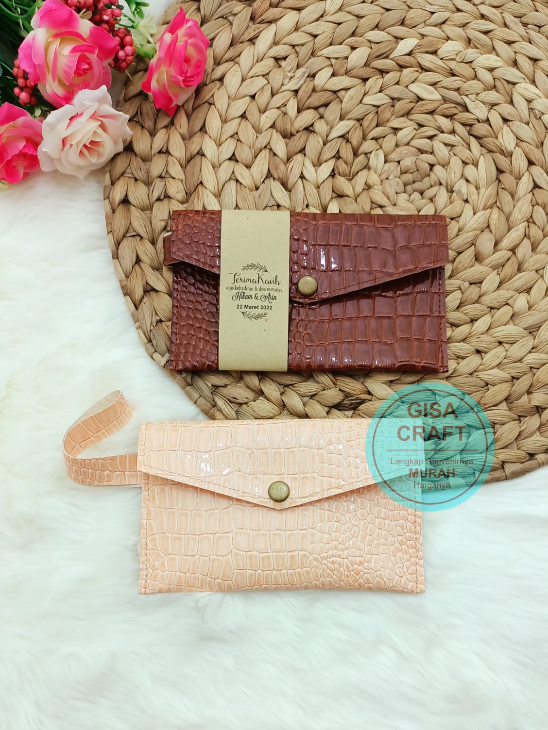 Souvenir Dompet Amplop Bahan Kulit Sintetis Motif Buaya Dengan Tali Pegangan Ukuran +- 16 x 10 cm GSC288
