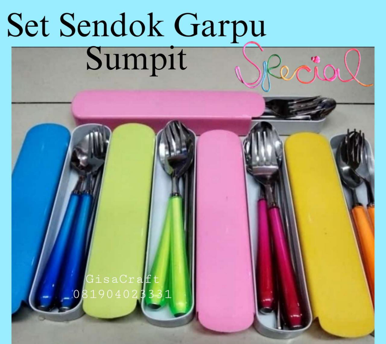 HomeTerbaru Souvenir Set Sendok Garpu Sumpit Stainless Kombinasi Gagang Plastik Warna Dengan Box Slading GSC315