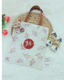 Souvenir Tas Kanvas Motif Dengan Tali Bisban Ukuran +- 20 x 17 x 5 cm (17 Dari Samping) GSC239